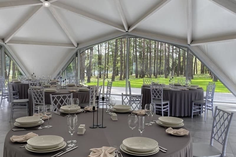 В базе отдыха "Хлеб&Soul" мы установили четыре соединенные конструкции площадью 10x10 метров, предназначенные для использования в качестве банкетной зоны. Эти конструкции стали неотъемлемой частью пространства для проведения банкетов, создавая уникальное место для гастрономических удовольствий и особых мероприятий.